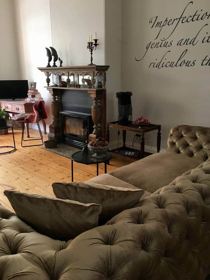 The kitchen-living space is perfect for relaxing in front of the fire with a book and a glass of wine.